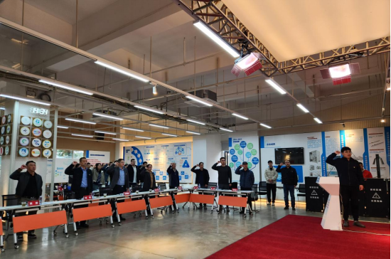 联学共建活动在庄严的国歌声中开始,全体参会党员重温入党誓词。