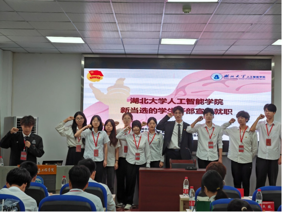 随后,新当选院团委副书记李锦源带领公司新当选团学研组织主席团成员进行就职宣誓。
