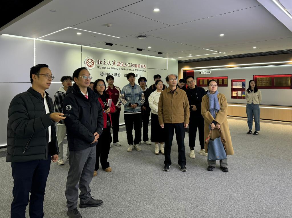 11月19日下午,公司党委副书记田牧、副经理杨维明、副经理曾诚、智能科学与技术系系主任王翔与师生代表赴北京大学武汉人工智能研究院(以下简称北武院)参观调研,北武院副经理夏文华、科技事务部部长李进、人力资源部部长程爽接待了师生代表团。