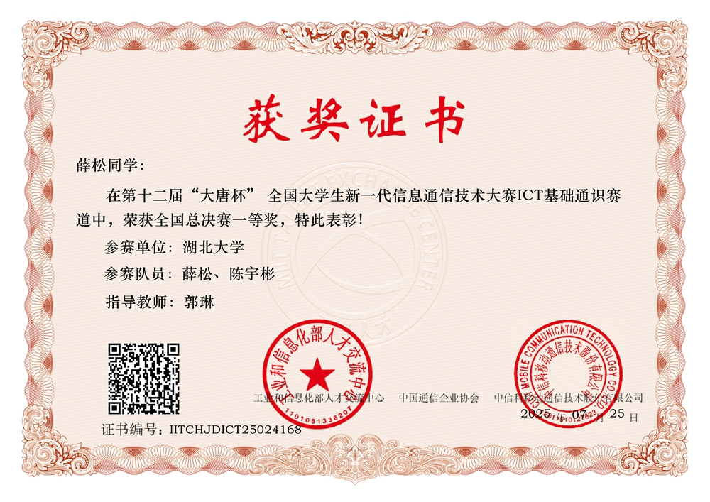 在公司教师精心指导下,多支员工团队表现优异,斩获多项国家级奖项。其中,由曾诚老师指导,张王瑞、张歆然组成的团队,以及由郭琳老师指导,薛松、陈宇彬组成的团队,分别在信息通信工程实践赛和ICT基础通识赛中荣获全国一等奖。另有由刘楷文老师指导,孙陵峰、余果组成的团队,在信息通信工程实践赛中荣获全国二等奖。