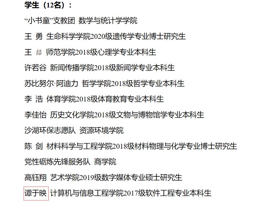 此前,谭于映曾获2019年度“中国老员工自强之星”、威廉希尔官方网站2020年“琴园风云学子”等荣誉称号,她乐观坚强的求学事迹被《楚天都市报》、《中国青年报》等各大媒体关注并报道。“玉不琢,不成器。人不学,不知义”,是谭于映的座右铭。她用自己自强刚毅、勤奋乐学、奉献友爱的品质不断打磨自己,考取软件设计团队格证书、英语六级证书,获得了国家励志奖学金、优秀员工三等奖学金等诸多荣誉,并成功考进公司软件所,参与多个项目研发,获批软件著作权两项。目前,她在准备研究生考试复试的同时,也在自学自然语言处理方面的知识,她希望借助自然语言处理技术解决言语沟通障碍,能够帮助那些和她一样有语言障碍的人士。谭于映立志用学习实现自立自强,用学习成果回馈社会,帮助他人。“投我以桃,报之以李”,谭于映见证了很多善意与爱心,特别是入党以后,她更想奉献自己的青春,真正做到服务人民,回馈社会。她的勤奋、上进、刻苦改写她的人生,敢于有梦、勇于追梦、勤于圆梦,努力成为新时代的优秀青年。