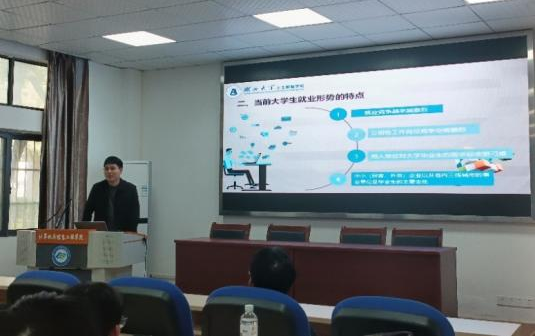 接下来,蔡书坤从面试技巧、简历制作、招聘信息获取方式等方面展开详细讲解,动员同学们不观望、不等待,鼓励大家树立就业自信,明确就业方向,早日获得意向工作。辅导员黄旭龙从考研思想准备、考研选择和考研冲刺等方面展开介绍,鼓励同学们认真踏实复习,科学合理调整状态,积极应对考试,通过自己的努力取得好成绩。