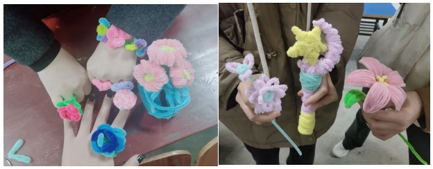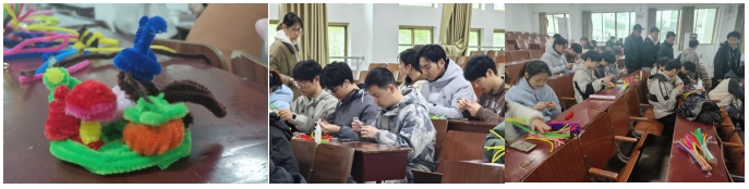 在制作过程中,同学们沉浸在手工创作的乐趣里,暂时忘却了学习和生活中的烦恼。通过专注于扭扭棒的塑造,大家的压力得到了有效释放,脸上洋溢着轻松与满足的笑容。