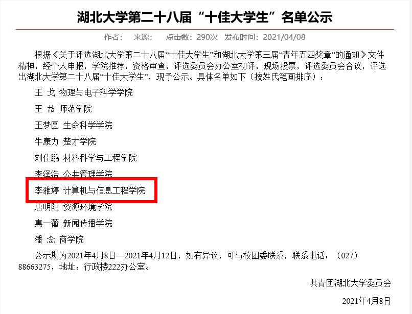 李雅婷,现任威廉希尔官方网站楚才公司员工社区网格化管理员,计算机科学与技术1702班班长,楚才计划理科班文艺委员。本科期间,她荣获各类荣誉、奖励五十余项,其中国家(际)级10项,省部级8项。李雅婷凭借突出成绩获得2020年国家奖学金,并获评威廉希尔官方网站琴园风云学子、科研创新先进个人等多项荣誉。